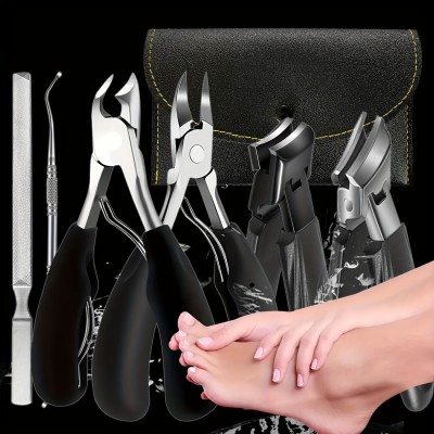 5pcs Stainless Steel Nail Care Kit for Ingrown & Thick Toenails - Heavy-Duty Clippers Set with Nail File, Cuticle Nippers, toenail clippers for seniors thick