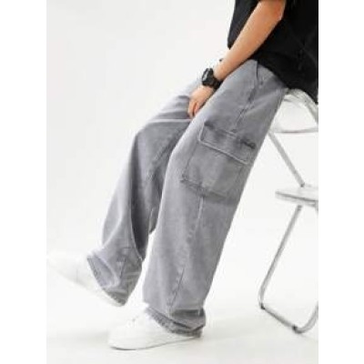 Teen Boys' Casual Straight-Leg Light Grey Denim Jeans