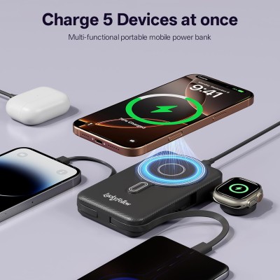 ,10000mAh Fast Charging Wireless Charger Station External Battery Pack Slim Pocket Size Power Bank with Stand Compatible with iWatch, iPhone and Android Phones